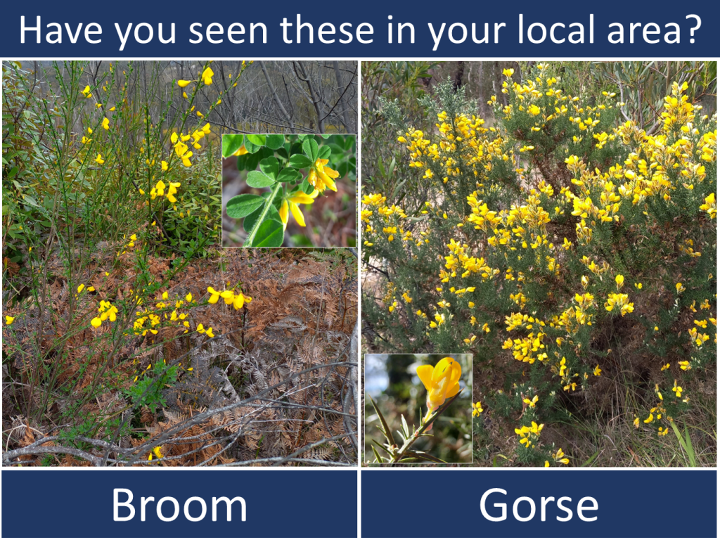 There are lots of yellow flowers around at the moment. Daffodils, forsythia and many wattle species. But some of the yellow flowers are Weeds of National Significance: broom and gorse. You can see these in flower along the highway and railway.